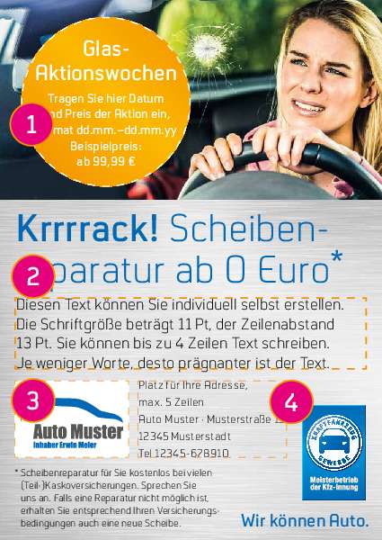 Anzeige Glasreparatur „Krrrrack!“ 90 x 127 mm, individualisierbar