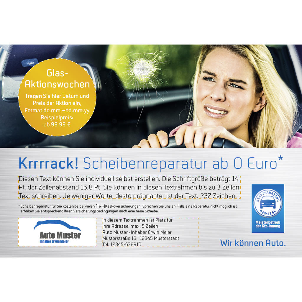 Anzeige Glasreparatur „Krrrrack!“ DIN A5, individualisierbar