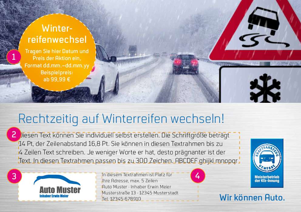 Anzeige „Rechtzeitig auf Winterreifen wechseln" DIN A5, individualisierbar