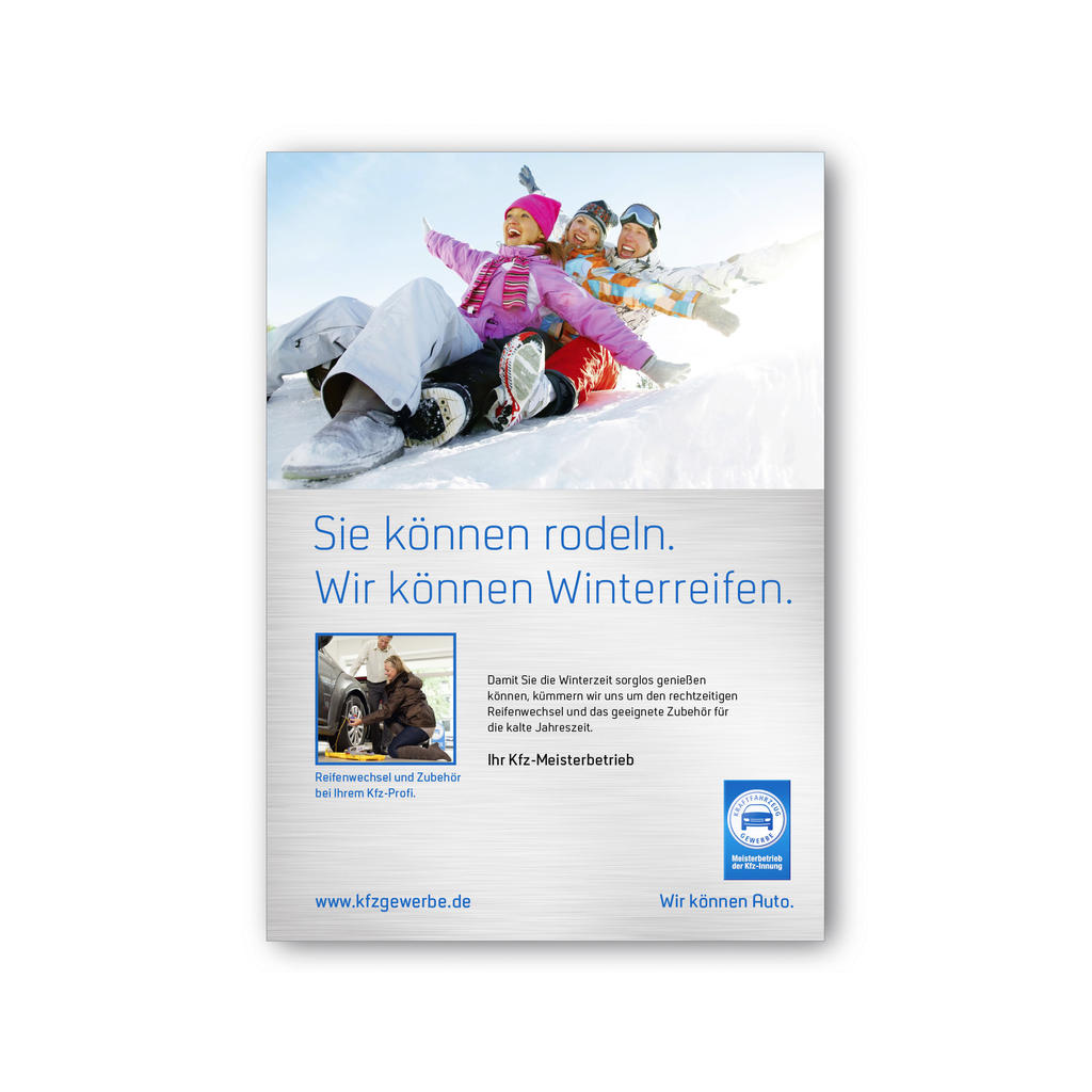 Die Anzeige „Sie können rodeln. Wir können Winterreifen.“ im Format DIN A4 können Sie hier downloaden