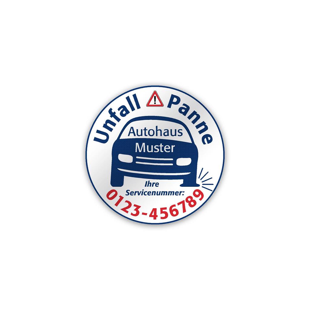 Ein Aufkleber im Fahrzeug garantiert, schnell die richtige Hilfe zu finden.