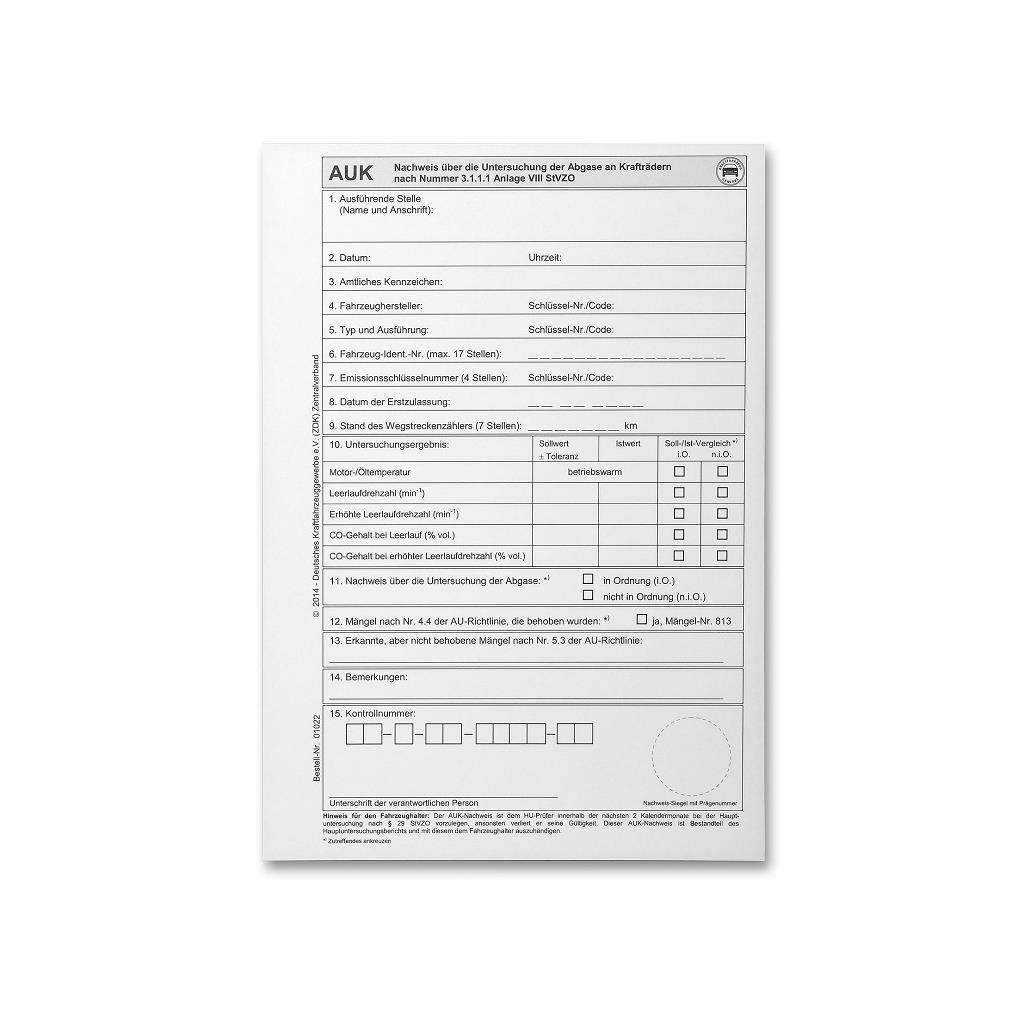 Nachweis über die Untersuchung der Abgase an Krafträdern (AUK)