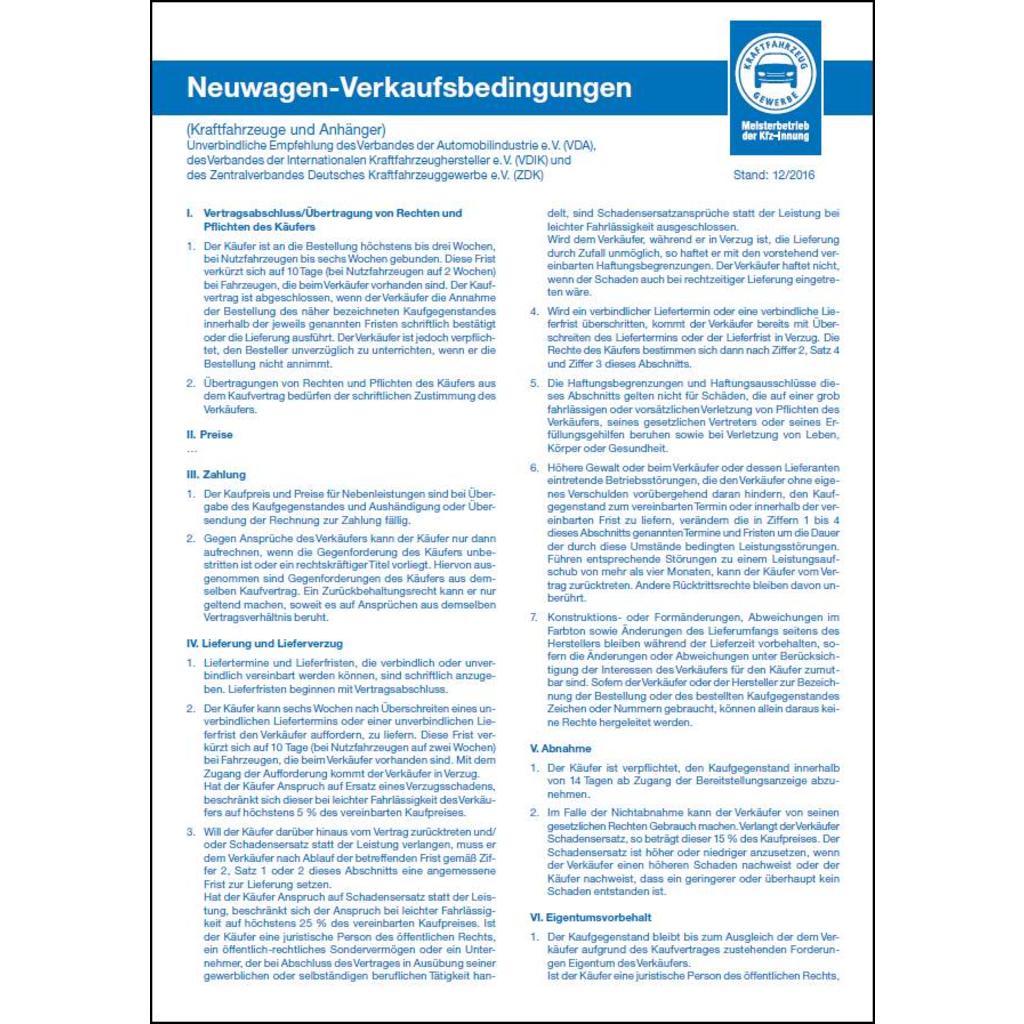 Neuwagen-Verkaufsbedingungen für Kraftfahrzeuge und Anhänger