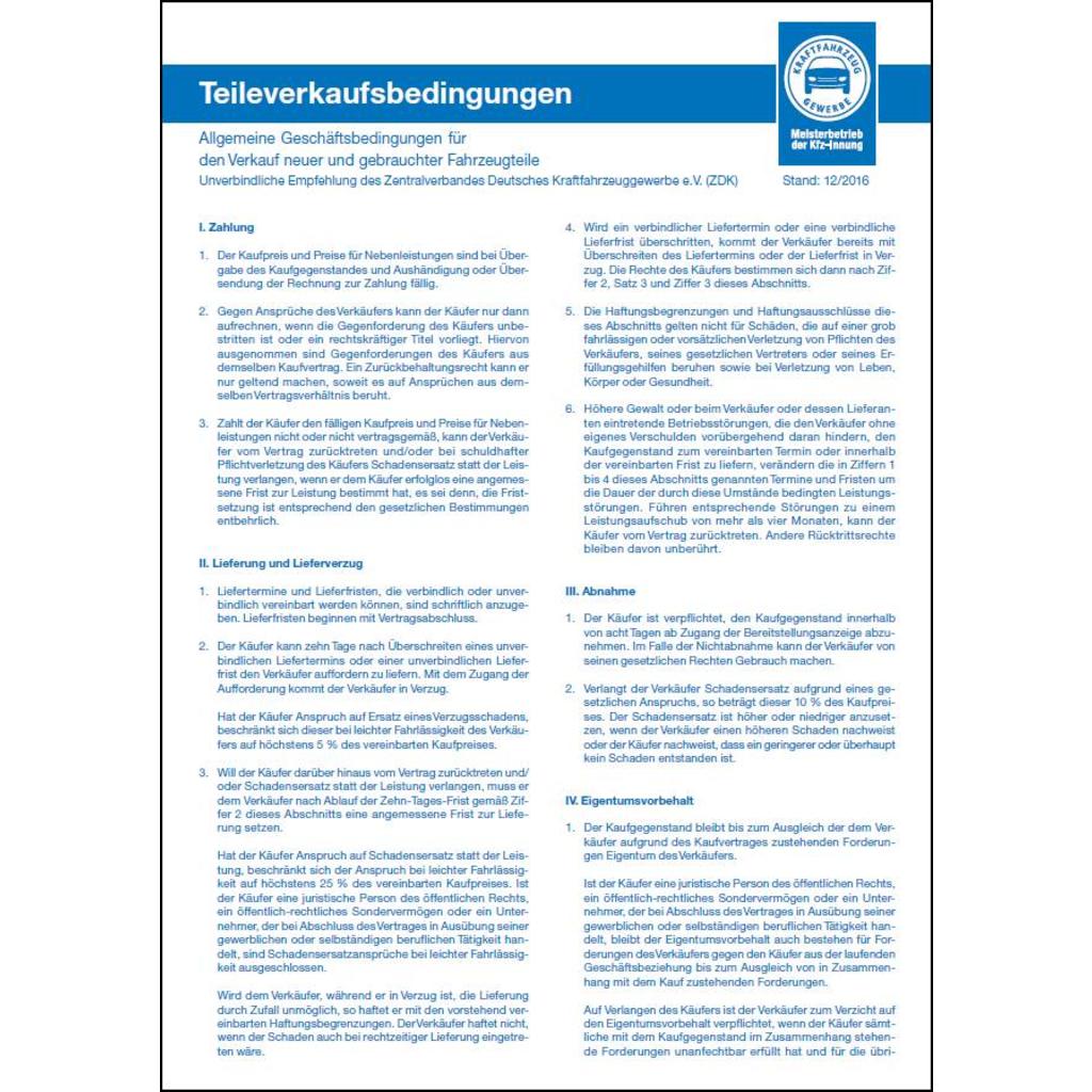 Allgemeine Geschäftsbedingungen für den Verkauf neuer und gebrauchter Fahrzeugteile