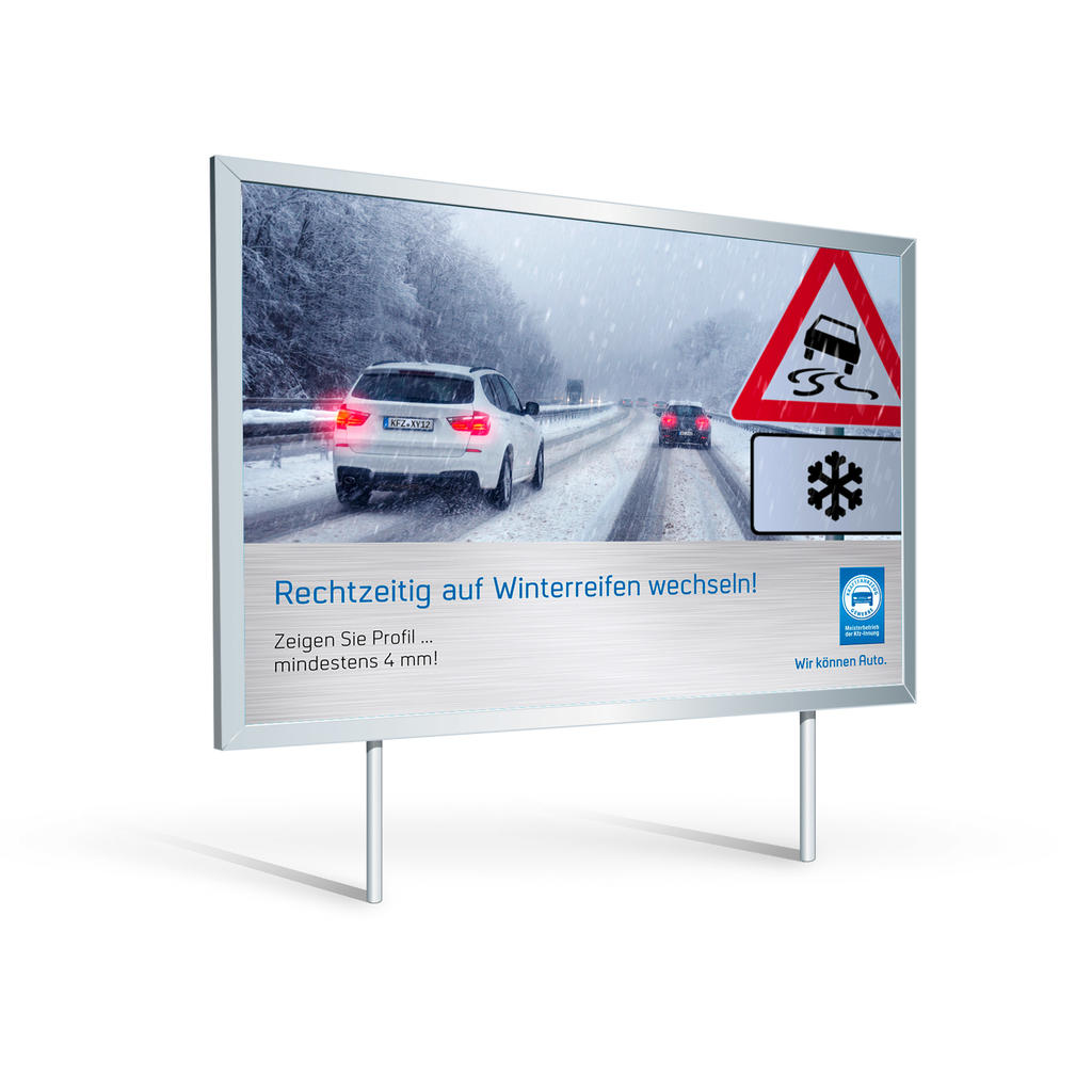 Großflächenplakat „Rechtzeitig auf Winterreifen wechseln!" Motiv 1