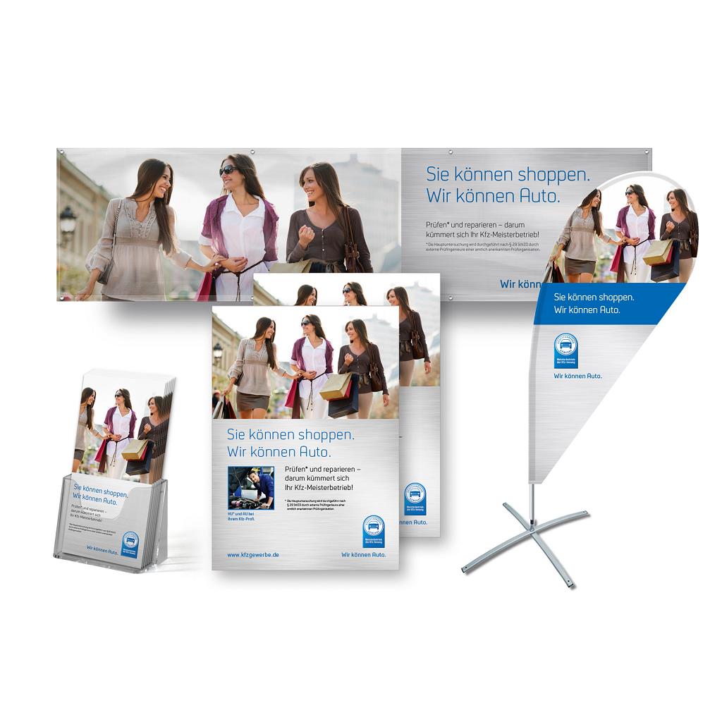 Das Paket mit dem Motiv „Sie können shoppen. Wir könen Auto.“ besteht aus: