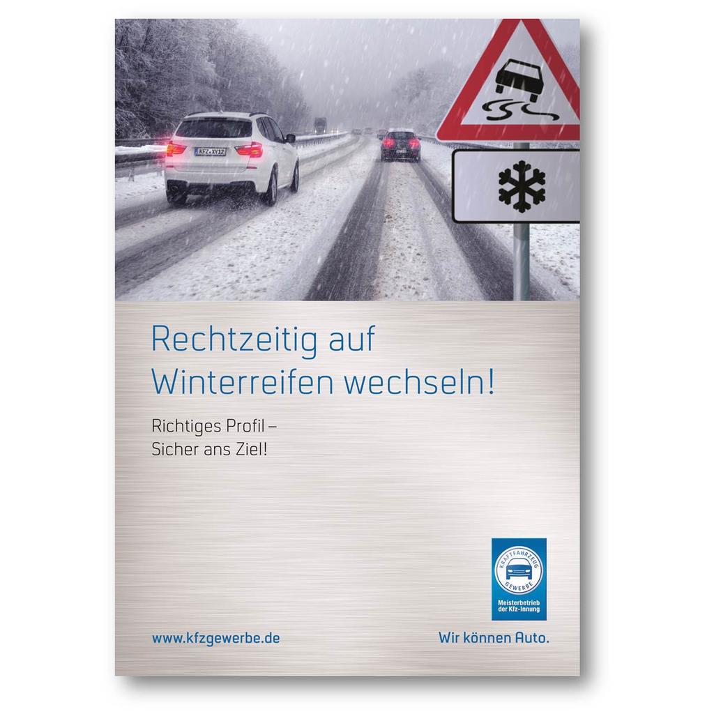 Plakat „Rechtzeitig auf Winterreifen wechseln!“