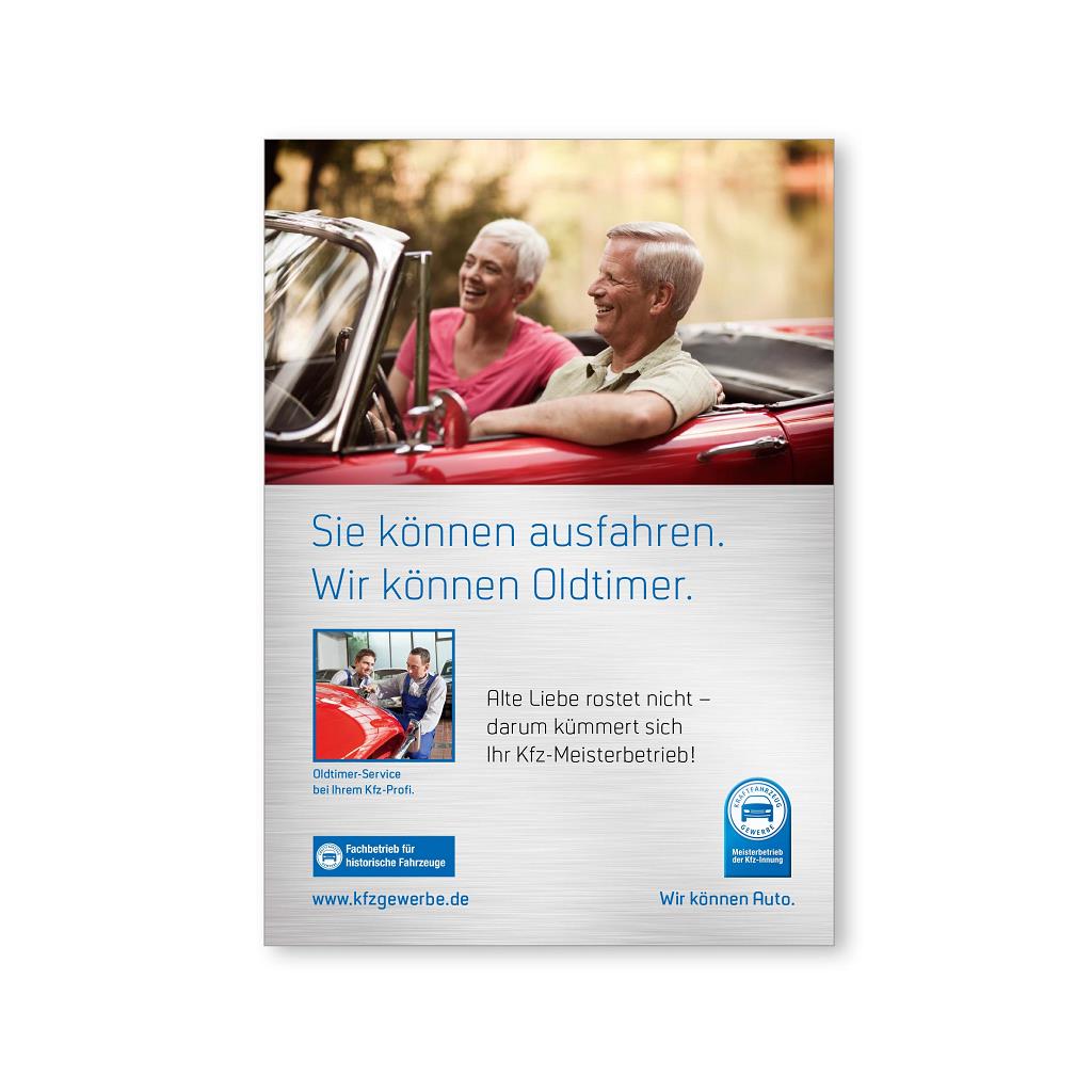 Plakat „Sie können ausfahren. Wir können Oldtimer.“