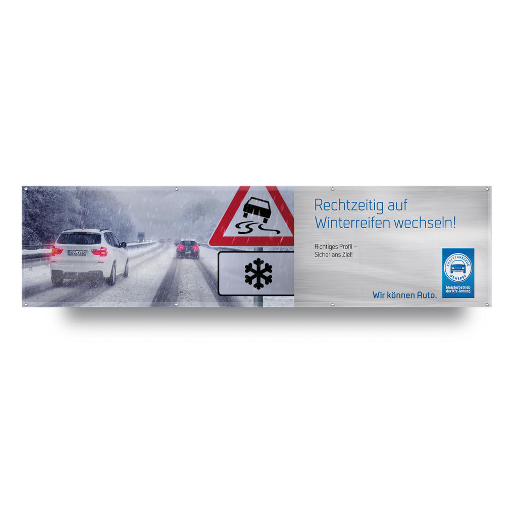 Spannbanner „Rechtzeitig auf Winterreifen wechseln!“