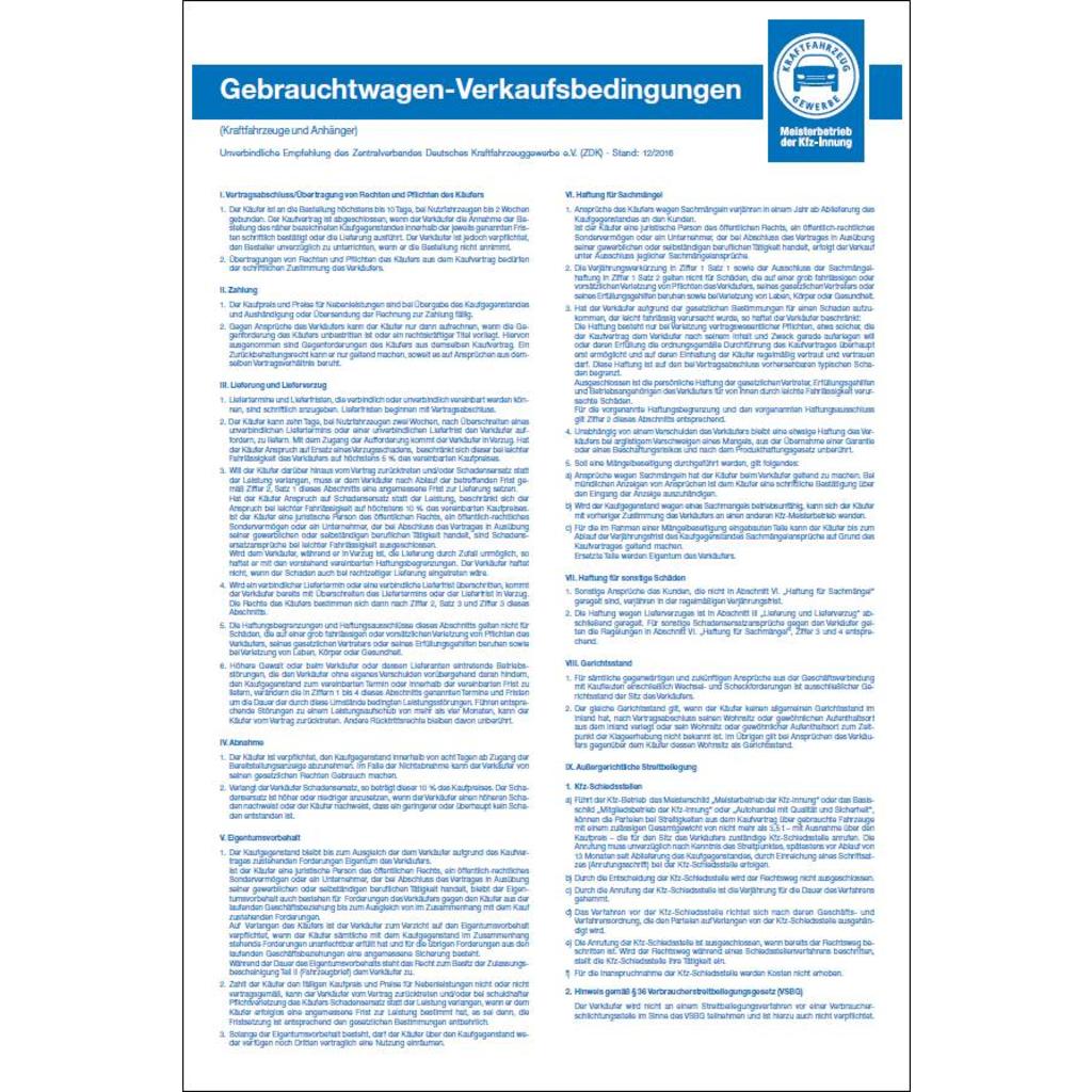 Gebrauchtwagen-Verkaufsbedingungen für Kraftfahrzeuge und Anhänger