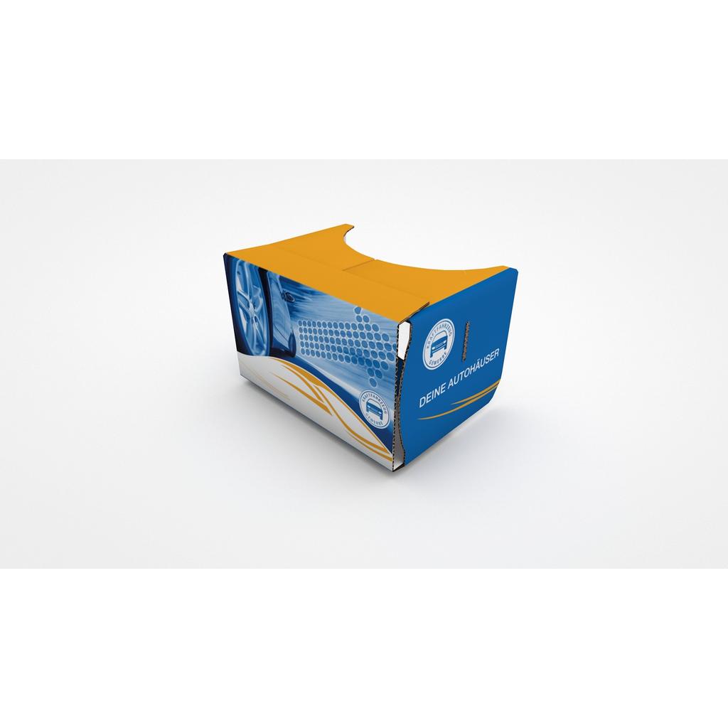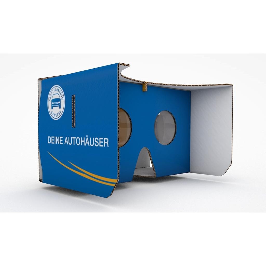 Diese clevere Box wird zusammen mit einem modernen Smartphone zu einer Virtual-Reality-Brille. So wird der Einstieg in die VR-Welt einfach. Das Handling ist leicht: Das Smartphone (Android / iOS) wird nur in die Box gelegt. Schon kann das 360-Grad-Erlebnis starten. Das so genannte Cardboard ist Teil der ZDK-Imagekampagne „Deine Autohäuser“. Autohäuser können die Brille in der Kundenansprache, auf Events und für Promotion-Aktionen nutzen. Sie hat einen QR-Code, der auf http://www.deine-autohäuser.de/ verlinkt, wo Autokunden VR-Filme mit Geschichten rund um erfolgreiche Autohaus-Kunden-Relations finden.